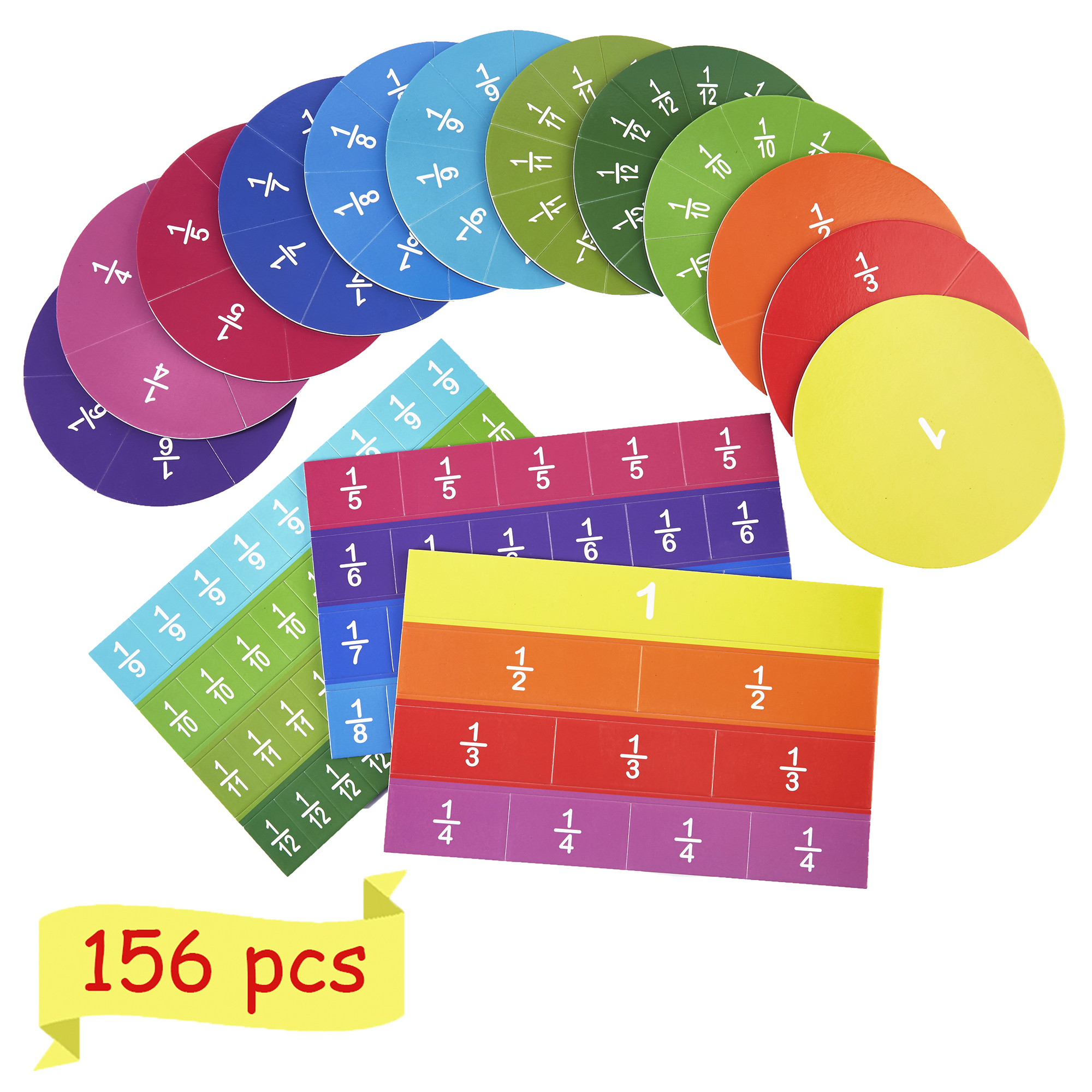 Zazzykid Magnetic Tiles Circles Fraction Set 156pcs 12 Color Coded Counting Math Toys Walmart Com